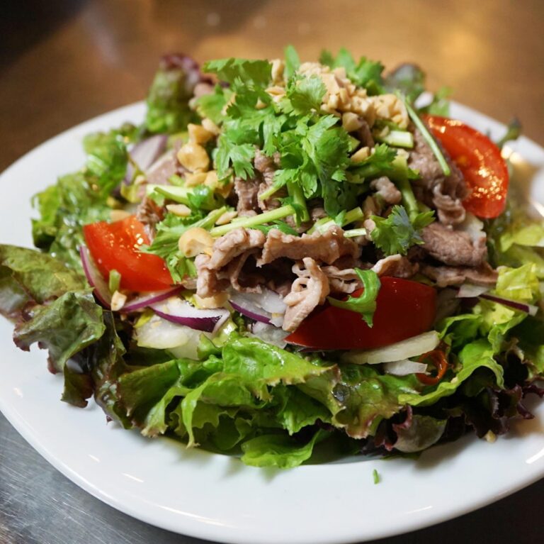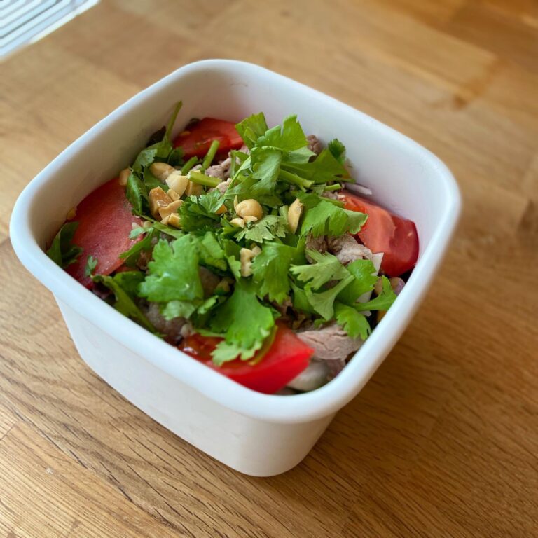 さて、さっそくお持ち帰りでオーダーいただきました、ヤム・ヌァ!タイ風牛肉サラダでございます。キッチンスタッフナベさん的サラダ部門No. 1大好きメニュー、こいけ菓子店の圭子ちゃん的夏のNo. 1メニューと、リトスタを良く知る2人の推しメニューです。ライムとナンプラーベースの甘酸っぱいドレッシングと刻んだピーナッツ、茹でた牛肉の旨味とセロリ、パクチーの香り…全部一緒に頬張ってほしい!開店当初からのリトスタ人気メニューです!(麻)