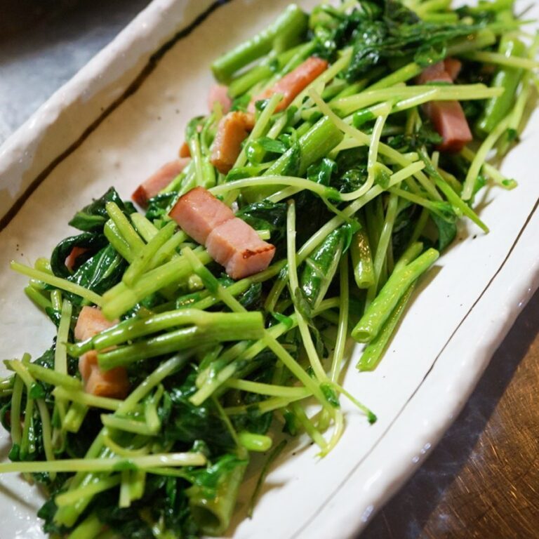 さてと夏です!野菜がイイネ!と「青菜と豆苗、ベーコンのにんにく塩炒め」!今夜の青菜は空芯菜!とこれはアレだ、ベーコンににんにくの風味と旨味で無限にたべられるヤツだ!と、もちろんワタクシもたべたいっ!(笑)(お)