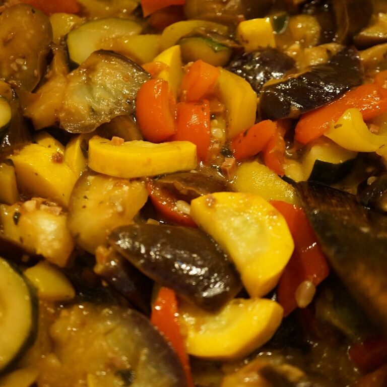 さてと夏だよ!夏野菜!とオリーブオイルと叩いた梅干しで「夏野菜の梅オイル蒸し」!茄子にズッキーニにパプリカをざくざく切ってわいわい蒸した夏の一品!つまみにヨシ、ごはんにもまたヨシ!(お)