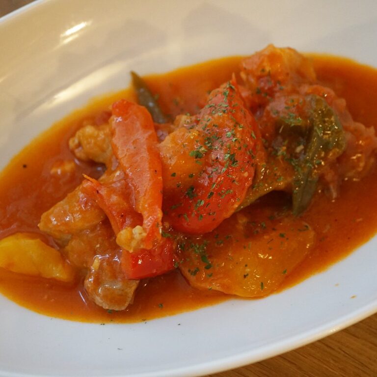 また頑張ってますよ、新メニュー! 豚肉のバスケーズ、です。北海道産の良質な豚肩ロースをパプリカとピーマン、ニンニクとトマトと一緒に白ワインで煮込む、バスク地方のお料理です。モロッコ、ポルトガル、スペインからバスク地方にかけて、あの辺のパプリカ使いは本当に美味しくてクセになります!ほんのり辛味もあります、ぜひ爽やかな酸味の煮物を味わってみてください!(麻)