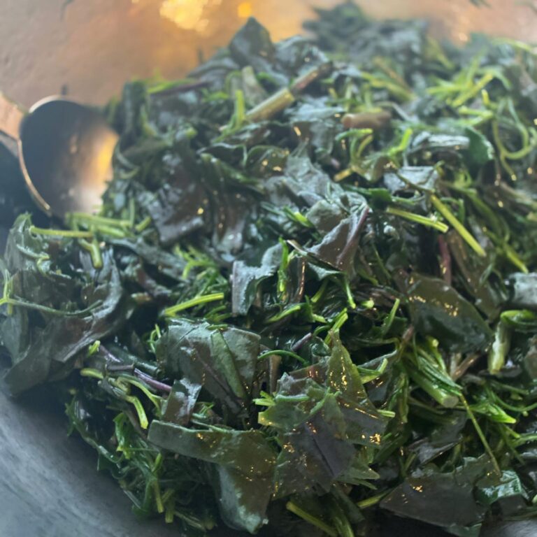 この組み合わせが好き! お向かいのボン・マルシェさんにたまに入荷している「金時草」の、ぬるっとした食感に独特の山菜みたいな風味が好きで、おかひじきのシャキッとした食感と合わせて「金時草とおけひじきのわさび和え」でお出ししております。これ、店長の好きなわさび和えランキングかなり上位ですね。今の季節だけ!小さなお惣菜、ぜひお試しください♪(麻)