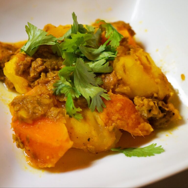 さてと雨の土曜日…地味だけどなにげに旨いよ!「牛肉とじゃがいものスパイストマト煮」!ワインビネガーとレモンの酸味を効かせたトマトソースでさっくり炒り煮!はアゼルバイジャン風っ!(お)