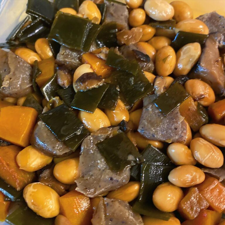 仕込んでいたら「あっ、それは五目豆じゃないですか!? 明日タッパー持ってこよう!」と言い出すスタッフ続出の、身内に大人気のお惣菜「五目豆」。大豆を一晩水につけて煮るところから始めて、柔らか過ぎないように茹でたら、水分少なめで醤油で炒りつけるように煮るのがリトスタ風。一粒ずつ噛み締めるも良し、スプーンで頬張るのも良し!地味なものほど美味しいってのもありますよね。(麻)