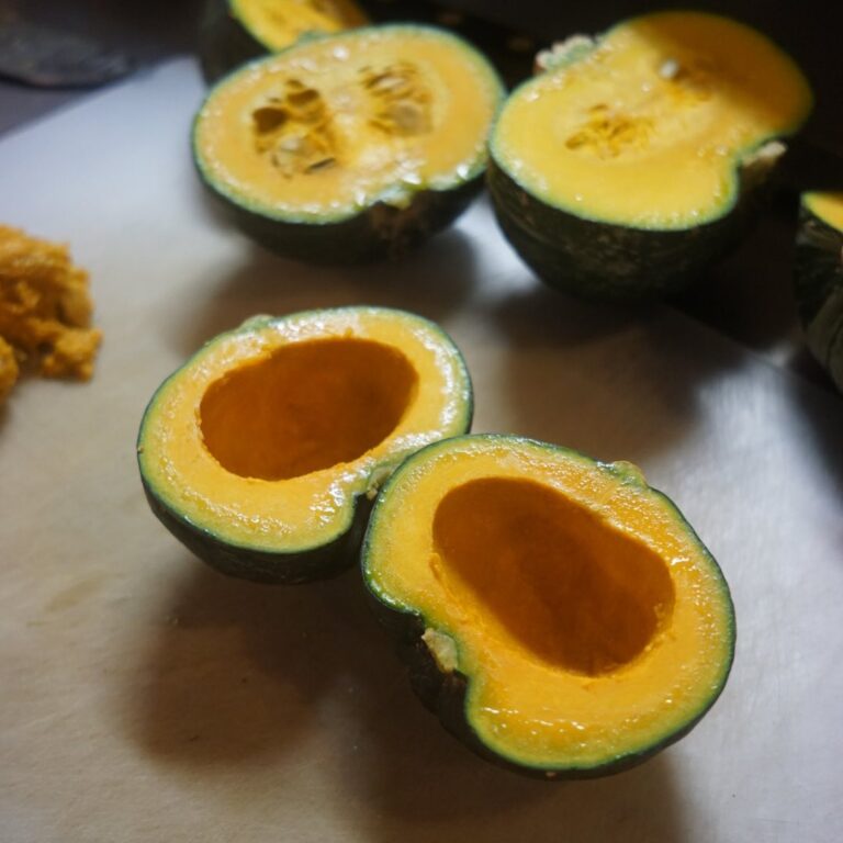 高知から送られてきたちいさなかぼちゃをまっぷたつ!と、ワタを抜いたら笑っているのか叫んでるのか嘆いているのか?やっぱりちょっとムンク的?(笑)(お)
