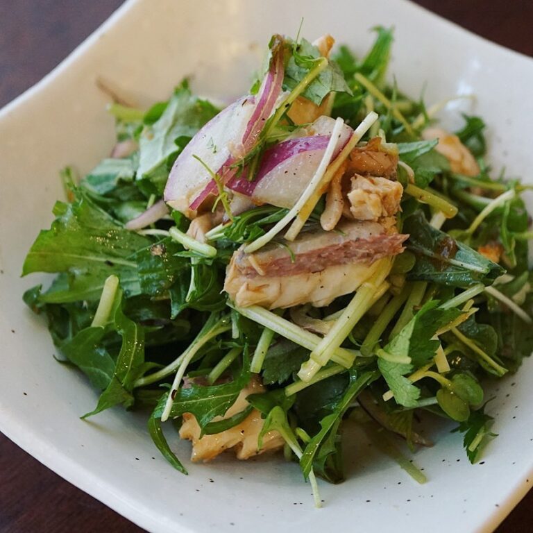 しとしと雨降りで昭和の日の祝日、さっぱりサラダからいきましょう!と「ブリのコンフィと香味野菜のサラダ」!ハーブやにんにくの入ったオリーブオイルは低温でゆっくり煮たブリは旨味いっぱい!さっくり香味野菜とあわせたら自家製バルサミコ醤油ドレッシングで!(お)