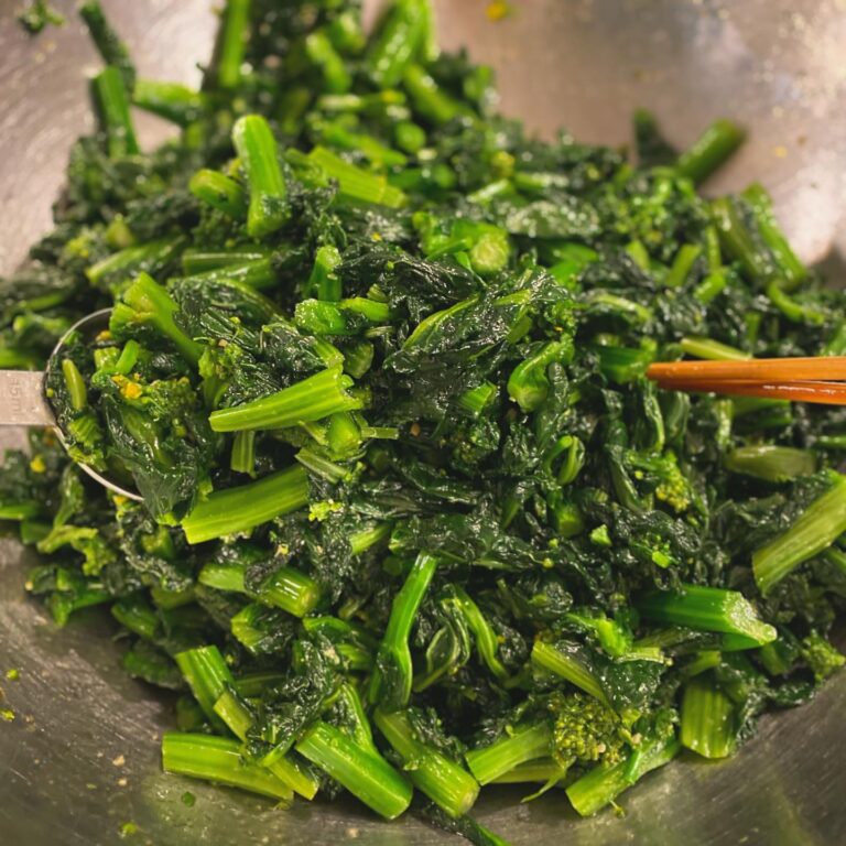 旬を食べると良いとよく言いますが、アブラナ科の野菜は春が食べどき!と中医学でもよく言われているようです。どうりで食べたくなるわけだ!というわけで今回は宮城の「ゆきな」の菜花をわさび和えに。絶対体にいい色してるよ!(麻)