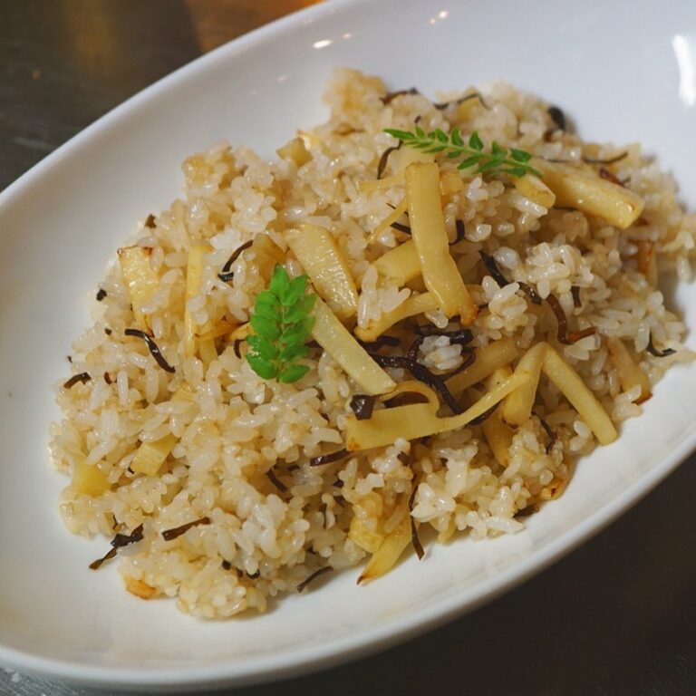 始まってますよ、たけのこチャーハン! 先週あたりから「もうやってますか?」と多数お問い合わせいただいておりました、当店一番人気の春限定メニューであります。下茹でしてほんのり出汁で下味をつけた筍に、塩昆布の旨味とバターの香りがベストマッチ!山椒の木の芽を飾ったら、洗練された香りで料理の格が一段と上がりますよ!毎年肘を痛めるほどフライパンを振る店長ミヤザキ、今年は筋トレもしてるし、一味違いますよっお任せあれ!(麻)