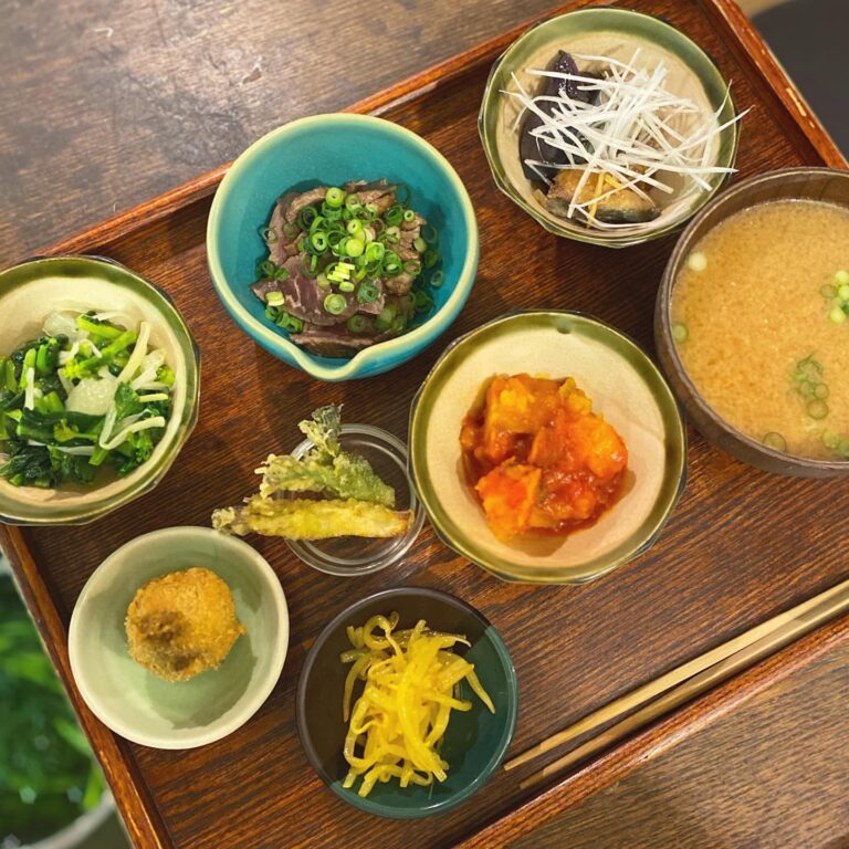 はい、今日も一日ありがとうございました! 忙しかったおかげで、夜のホール担当ミウちゃんの賄いが無いよー。というわけで残り物ちょこもり!やけに豪華になった気がする!菜の花と文旦のサラダ、牛たたきのはしっこ、サバの揚げ漬け、お通しのさつまいもトマト煮込、もやしのカレーマリネ、タラの芽の天ぷら、ふきのとう入りコロッケ、お味噌汁。ダイエット中にてご飯は無しです(麻)