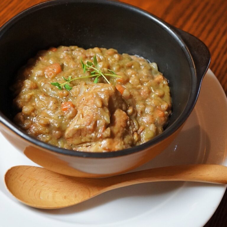 全くインスタ映えしないけど、美味しいよ!と声を大にして言いたい。豚肉のコンフィとレンズ豆の煮込みです。味も派手さは無いけど、じっくり煮た豚肉の旨みとハーブのほのかな香りをレンズ豆が吸い込んで、滋味深い美味しさです。豆好きの方、あつまれ〜(麻)