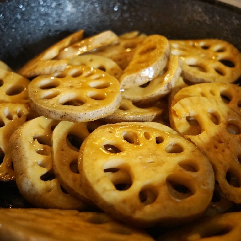ざくざく輪切りにした大きなれんこんはてらてらきんぴらに…明日のお昼は日替わり、例のアレになって登場ですよ!(お)