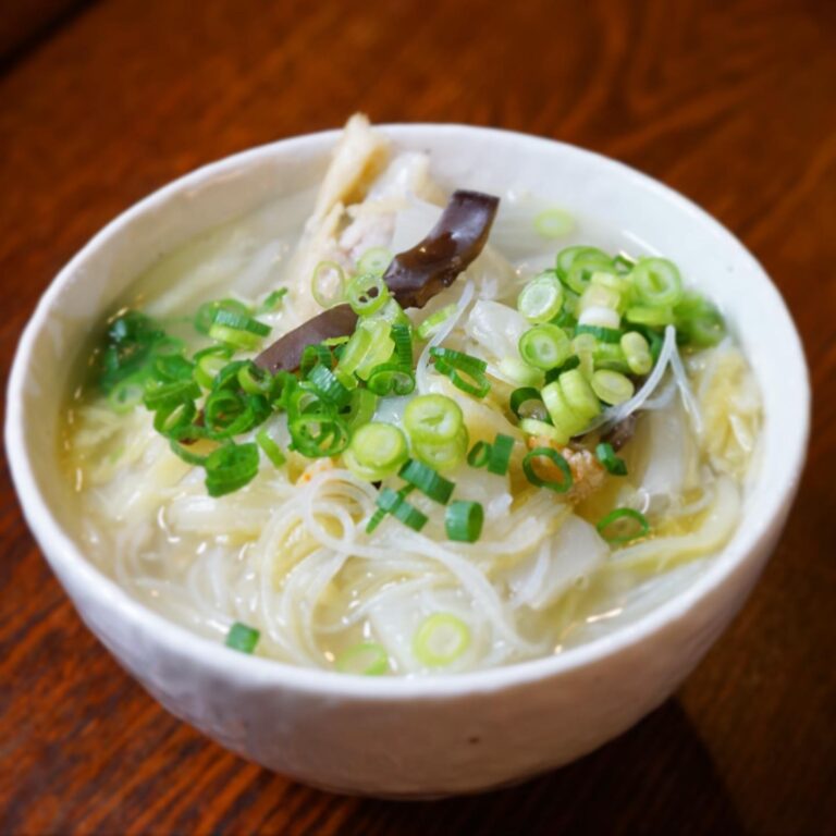 新メニューですよ、汁ビーフン! ビーフンってものが好きなんですよ店長ミヤザキ。アジアの粉物全般に弱いと言っても良いです。それで色々ちょこちょこ食べた後に、ささっと食べられる締めとしての汁ビーフン、なんてーのを開発してみました! 手羽元をコトコト煮てとったスープと、国産の旨味の濃い干しエビの出汁を合わせて、旨味を吸い込んだ白菜とコリコリ楽しいキクラゲも入ってる!ビーフン別添えでお持ち帰り対応いたします!ぜひお試しいただきたいなあ。(麻)