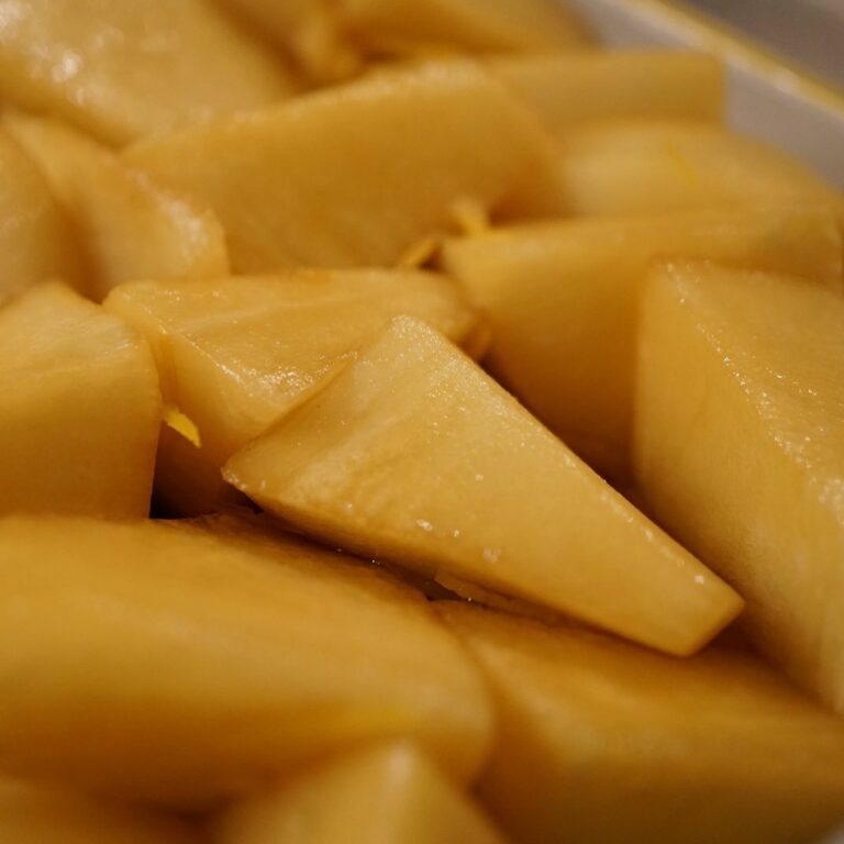 大きくアップで撮ったけれど、小さな冬の一品は「大根の柚子しょうゆ漬け」!散らした柚子の皮の清々しさ、寒い季節だからこそのおいしさですとも!(お)