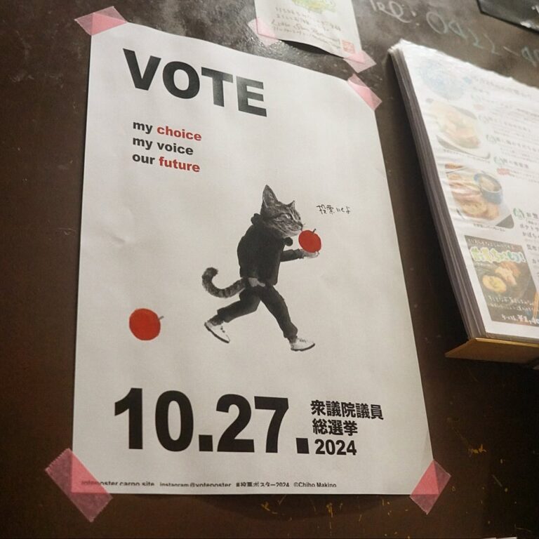 さてさてー!今週末日曜日はいきなりの衆議院議員選挙!と、いや、ワタクシドモオーナー夫婦は本日午後に期日前投票を済ましてきましたよ!と、えぇ、日曜はご予定ある方もちゃちゃっと?投票は可能ですので(しかも平日なら空いてておススメです!…笑)、ぜひぜひみなさんお忘れなく、確実にこれからのこの国を選択してまいりましょう!…って当店おなじみのイラストレーターは牧野千穂さんの選挙行こうねポスター、入り口にひとつ、トイレにはちょっと大きめの横バージョンも貼ってありますよ! とにもかくにも投票よろしくねー!(お)