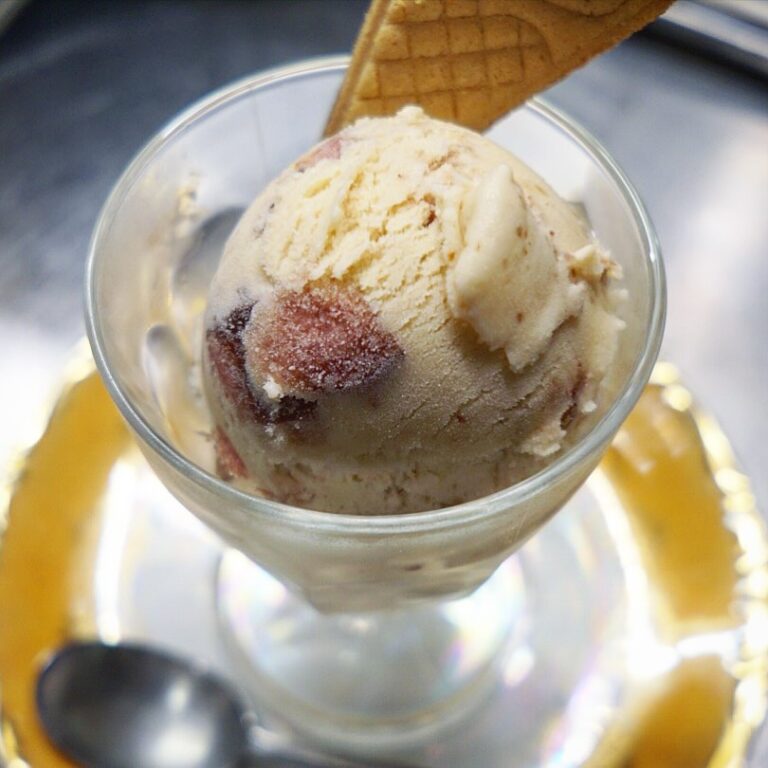 さてと自家製アイスクリームもちょっぴり秋の新メニュー!「洋梨とクリームチーズのアイスクリーム」!洋梨は白ワイン仕立てのコンポートにしてやさしい甘さ、北海道産のクリーチーズのちょっとこってりした旨みを合わせてた、ちょっぴりリッチな口当たりは秋のアイスクリーム出来ましたよーっ!(お)