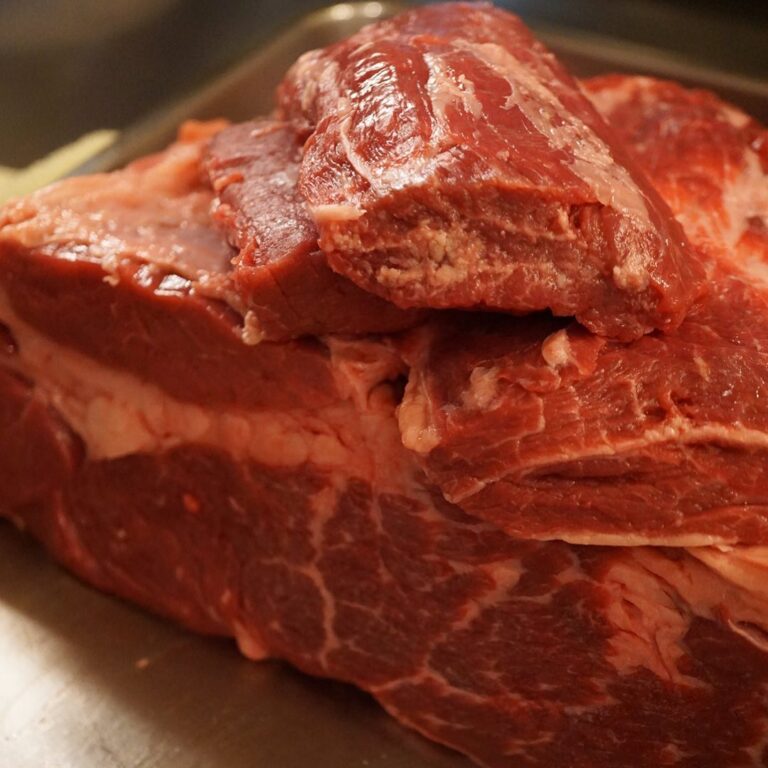 ほれぼれするよに美しい牛塊肉はチャックアイロール(牛肩ロース)!店長ミヤザキがほどよい大きさに切り捌いたら、塩麹に漬けて「牛肉の自家製塩麹漬け焼き」に!おいしいお肉がさらに旨みを増してやわらかーい!ワタクシももちろんたべたぁーい!(笑)(お)