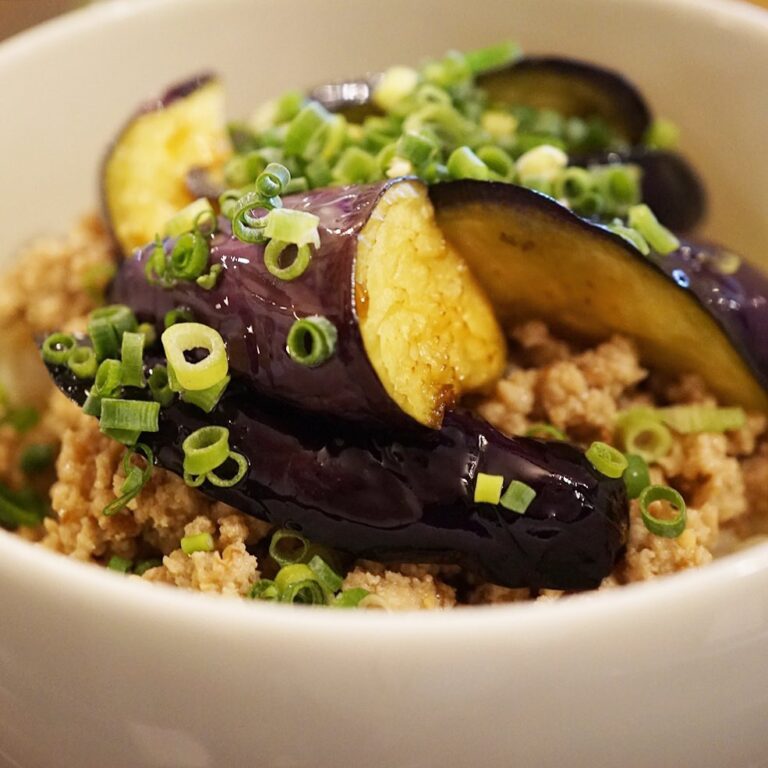 さてとお昼時!久しぶりに登場は「揚げ茄子と梅味噌そぼろどんぶり御膳」!あぁ夏の疲れにすいすい食がススムヨ!すてきなお惣菜3点盛り付きもうれしいね!(お)