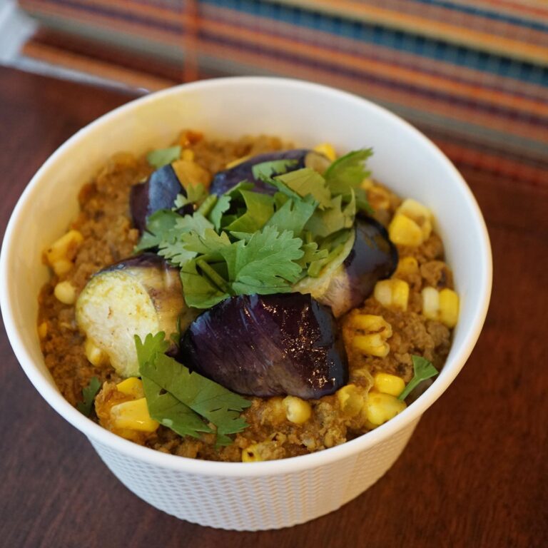 あれ?インド祭りは先週で終わったのでは?と思いきや、ほんのりインドから離れられない店長ミヤザキ、暑いとスパイスものを作りたくなるんです。今週は揚げなすととうもろこしのキーマカレーを作っています!お持ち帰りのみのメニューです。フレッシュなとうもろこしの甘み、揚げた茄子のトロリとした美味しさ。無くなったら切り替えるかもしれませんー(麻)