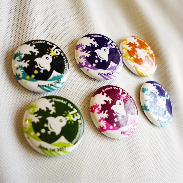 さてと周年記念ウィークは週末ですね!と、ワタクシも11周年にこのデザインになってからの色違い記念缶バッヂを胸に付けてみましたよ!と、まだ今週末はみなさんにプレゼント中ですよ、よろしかったらお立ち寄り下さいませ〜!(お)