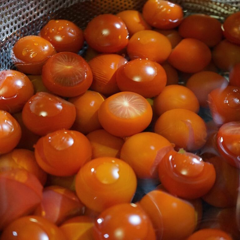 ひたひたミニトマトはこれから剥いてシンプルなおひたしに…ひんやり夏の箸休め?小さなちょっと気の利いた一品ですね(お)