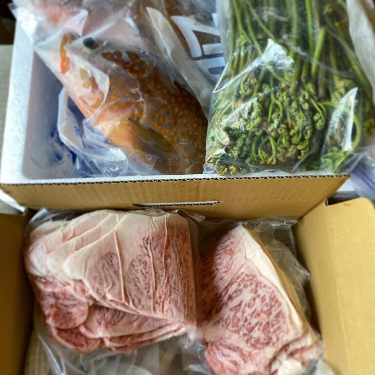 なんだか凄いのがきたぞ! 元スタッフで元獣医、今は山口の牧場の若奥様まっつんから、夫が育てた牛!!めっちゃいいお肉っぽいぞ。そしてオーナーokayan弟、自称狩猟民族のあっちゃんから、釣ったアコウと採取したワラビが…! 山口方面から、海の幸山の幸が一度に届いて嬉しい限りです。まっつん、あっちゃん、ありがとう!!(麻)