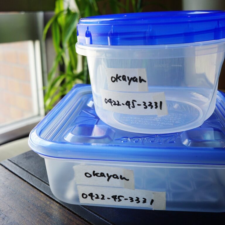 さてとすっかりお持ち帰り専門店も1週間!と、タッパーなどのお持ち帰り容器をお持ちになるお客さんにちらりとお願いは、お名前と電話番号を書いていただきたいのであります…もちろん直接でなくとも、こうしてマスキングテープに書いて貼って下さってもオッケー!なにとぞよろしくお願いします(お)