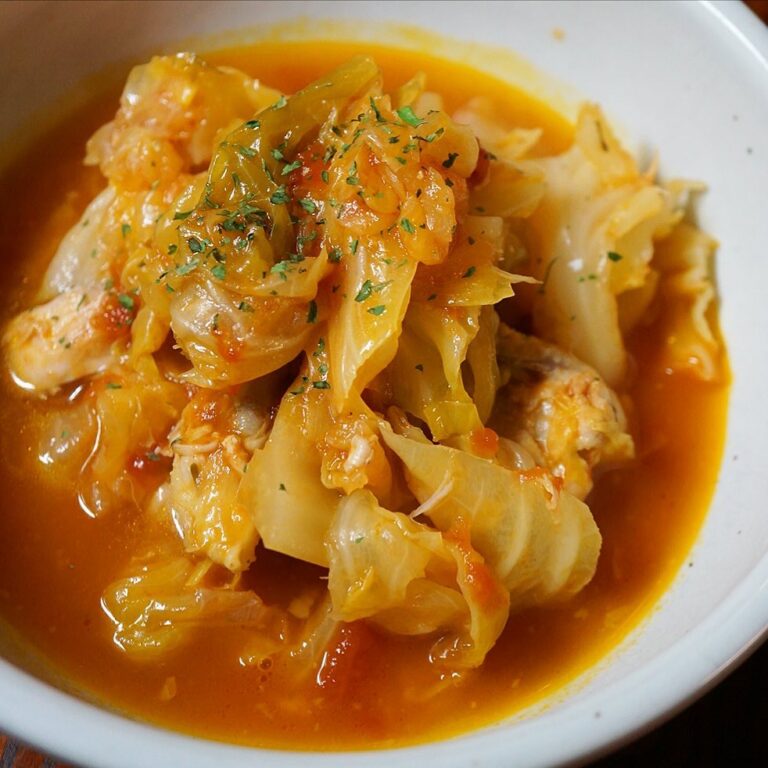 春野菜はやさしい春キャベツ!「鶏手羽元と春キャベツのトマト煮込み」!手羽元の旨味と出汁!やわらかい春キャベツのおいしさ!まろやかな酸味のトマトソースでシンプルなトマト煮!(お)