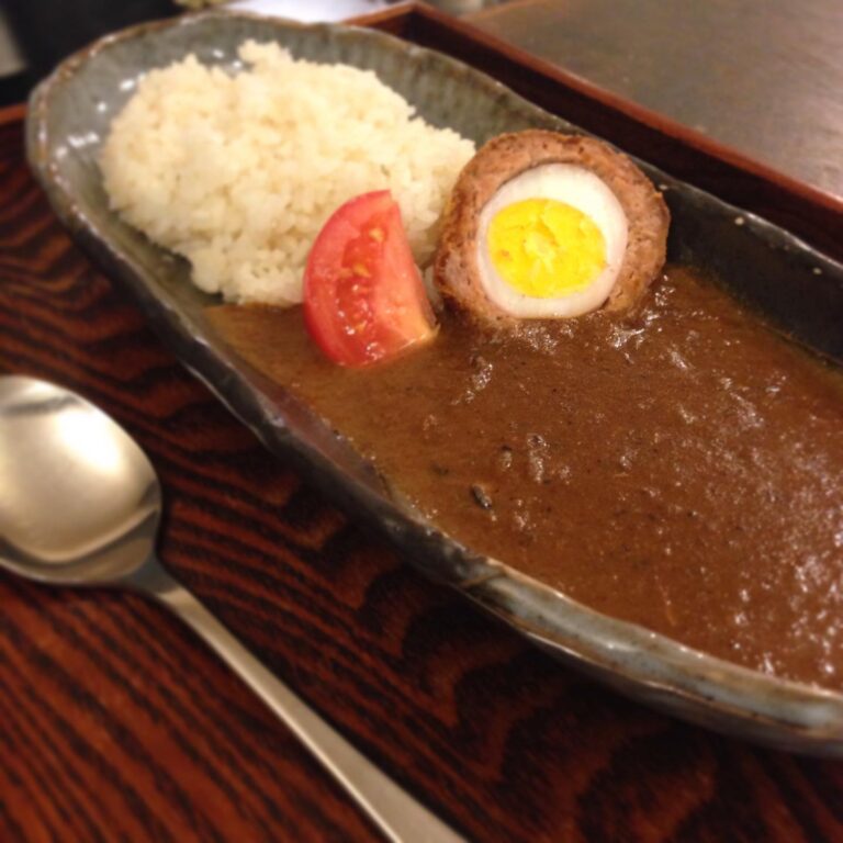 まかない限定カスタマイズ「スコッチカレー」です。今日のランチ、たくさんお客様ご来店ありがとうございました。そんな日はカスタマイズまかないがちらほら登場します。これが普段食べれないので美味し楽しいんです。たくさんのお客様と楽しいまかないに満足度大な1日でした。ありがとうございました。(うめ)