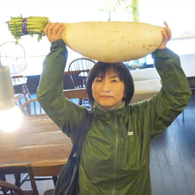 週末は農協前で野菜を販売している、三鷹の農家さん。土曜日のおじさんは大きく育てて売るのが得意だなと常々思っていましたが、今日は驚愕の大きさの三浦大根を発見!いろんな大きさあるのに値段は一律!じゃ一番大きいの貰っちゃいますよ!と頂いてまいりました。煮物にしてお通しにしようかな!(麻)