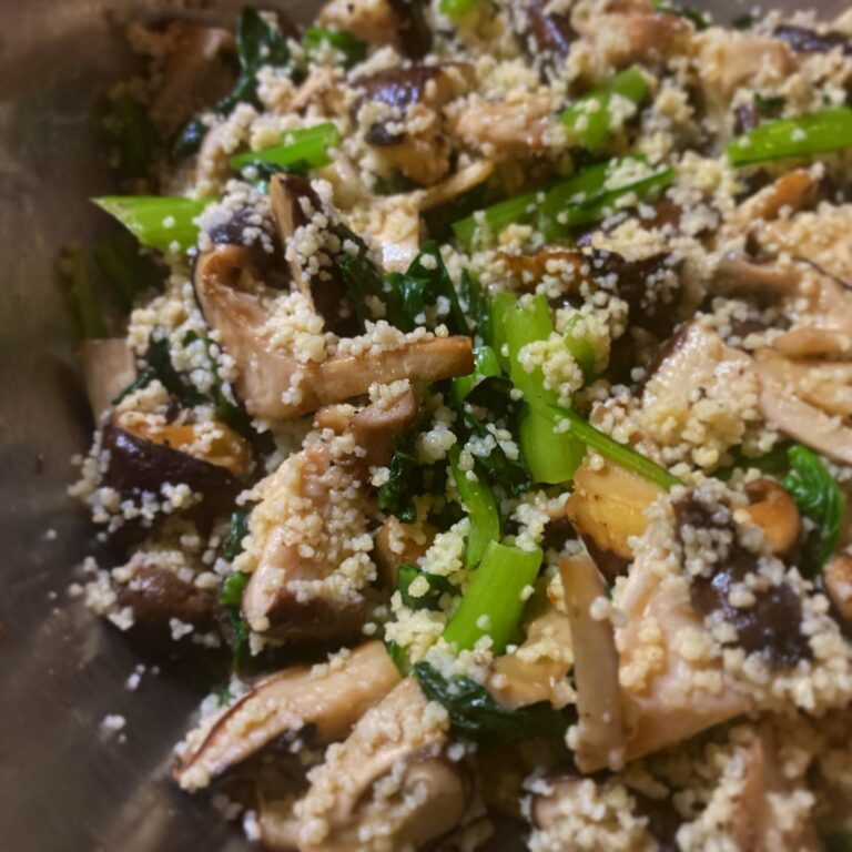 okayanのお母さんが作っている椎茸をいただいて、ミヤザキが山口から背負って帰って来ましたよ!というわけで、小松菜と合わせてクスクスのサラダに。「青菜ときのこのタブレ」でお出ししますー。小さな酒の肴メニュー、ぜひ〜(麻)