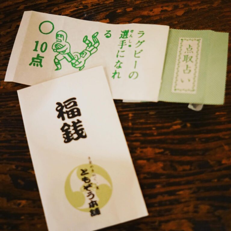 さて毎年お年賀に福銭を下さるのが手ぬぐいでお世話になっておりますともぞう本舗さん!今年はさらにおみくじは「点取占い」!と、ワタクシ満点の10点!(笑)店長ミヤザキは4点、キッチンスタッフのぐらは2点で「今年は悲しいことが起こる」でした!いや、ラグビー選手にはなれませんって!(苦笑)ありがとうございました!(お)