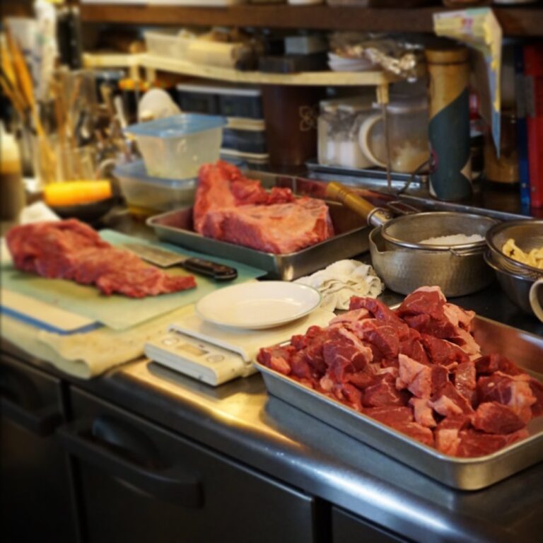 さてと開催中ですよ!と当店年末恒例のクリスマスディナー!…と、先週末は店長ミヤザキ、6kgの牛肩ロース肉をさっくさっくとさばきまくり!(笑)いや、去年牛肉Web仕事をのおかげでこんなのも全然オッケーだよなぁと、いや、これからもますます楽しみ!(笑)(お)