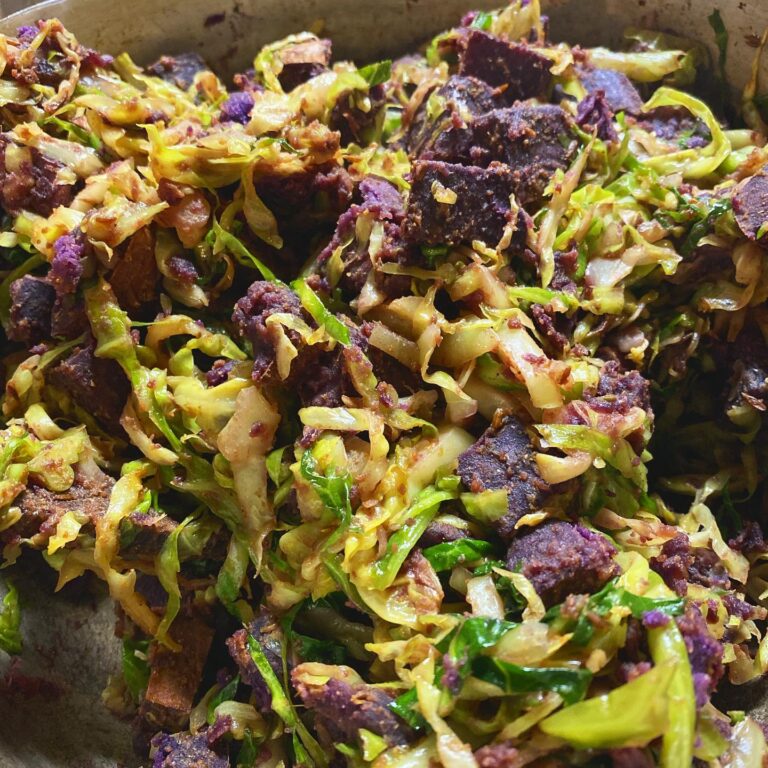 今年の大収穫は、高知に行って元キッチンのクボさんのお店に行ったこと、そしてそこで出会った食材や自然、文化の数々と、森田農園さんとのご縁が繋がったこと! 新しい食材や力強い旨味、それを育てている人、日常的に通りに市場が広がる土地柄、なにか大切なものを持って帰った気がします。 本日のお通しは、高知・森田農園さんの紫芋とキャベツのサブジ。色が美しい、だけじゃないのよ、美味しいの!(麻)