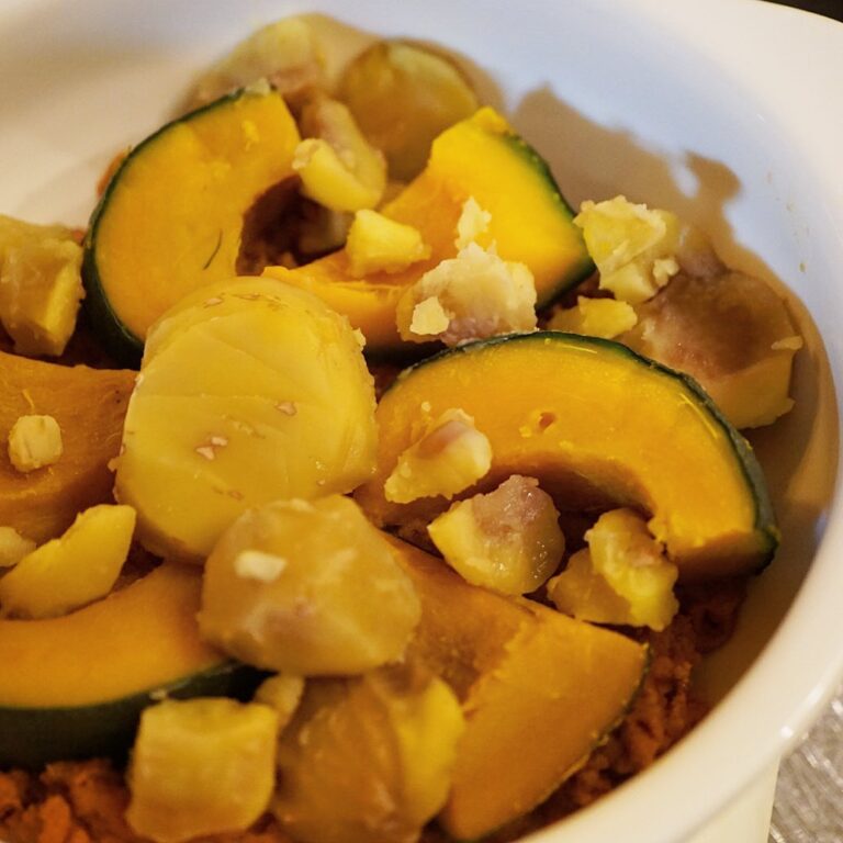 さてと今回のグラタンはまず耐熱皿の底に旨味満点のミートソース、その上にダブル主演は高知森田農園さん直送の栗とかぼちゃ!さらにこの上にまろやかな自家製ホワイトソース、さらにチーズをのっけてこんがり焼きます!やけどしてでもあつあつが旨し!(笑)お見逃しなく!(お)