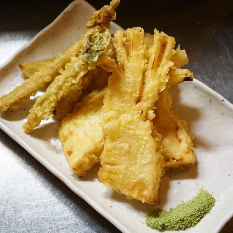 さてさてすっかり春はたけのこシーズンだけれど、忙しくて天ぷらをお知らせしてなかったよ!と「たけのこと山うど天ぷら盛り合わせ」!いや、なんといってもたけのこの穂先のおいしいところをババンと大きく贅沢なサイズ!(笑)抹茶塩でお召し上がり〜!(お)
