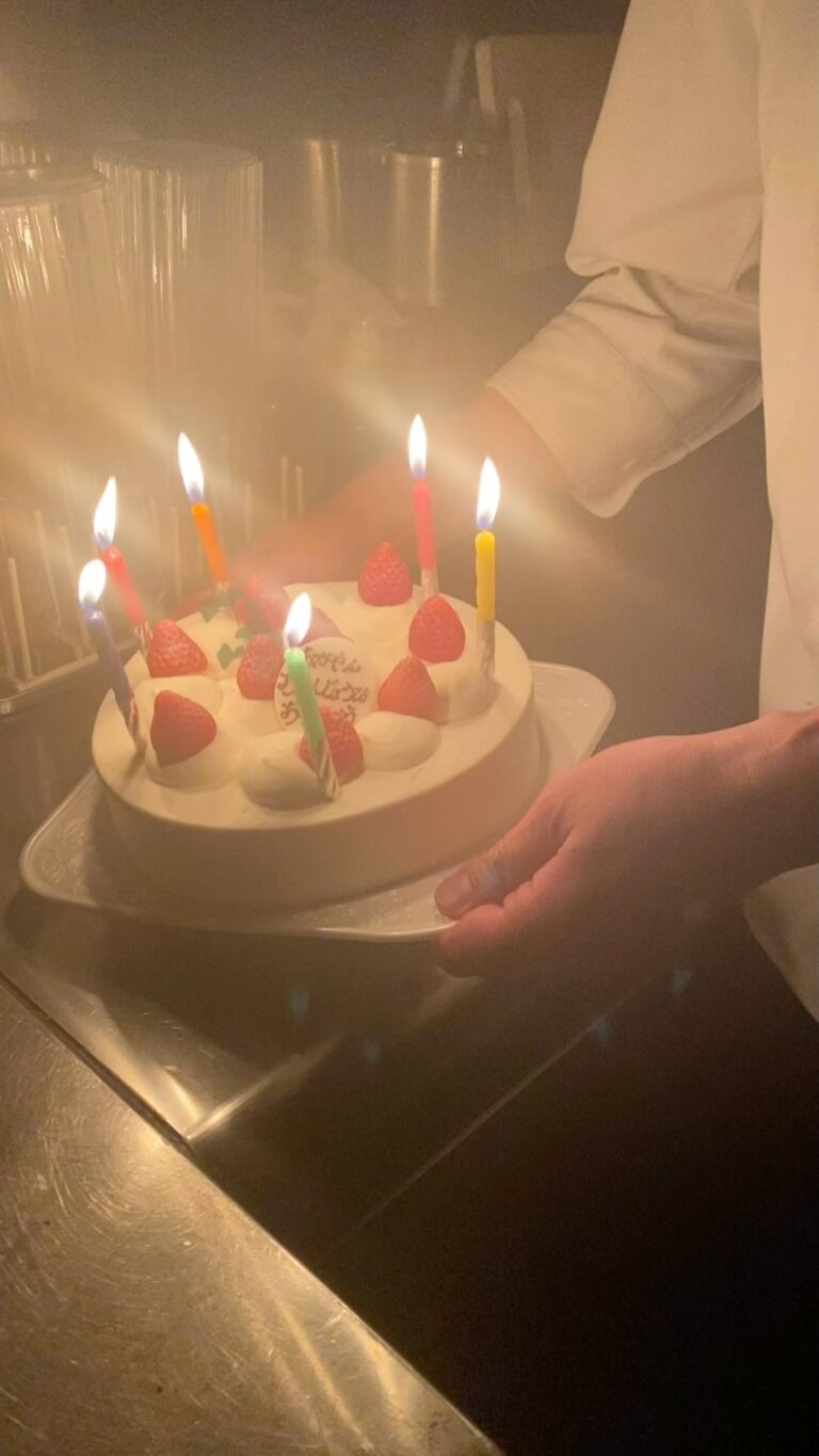 日付変わって28日、リトスタオーナーで名物ホールスタッフのokayan誕生日です。スタッフのシンコさんが差し入れてくれたケーキでお祝いさせていただいております。 大学生スタッフのさかっちが、電気を消してロウソクをふーってしましょう!と積極的に提案してくれました。ありがとう