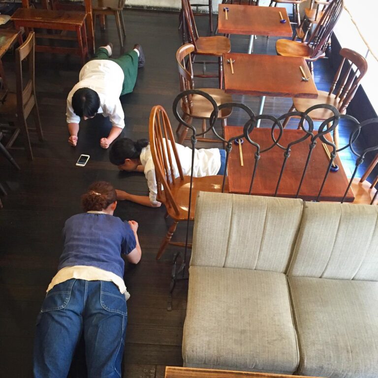 今日もがんばるプランク隊のみなさん…ひとプランクキメてあぁ、このままここで寝たいと(笑)、いやいや、床だから、夜営業はじまるから!(笑)(お)