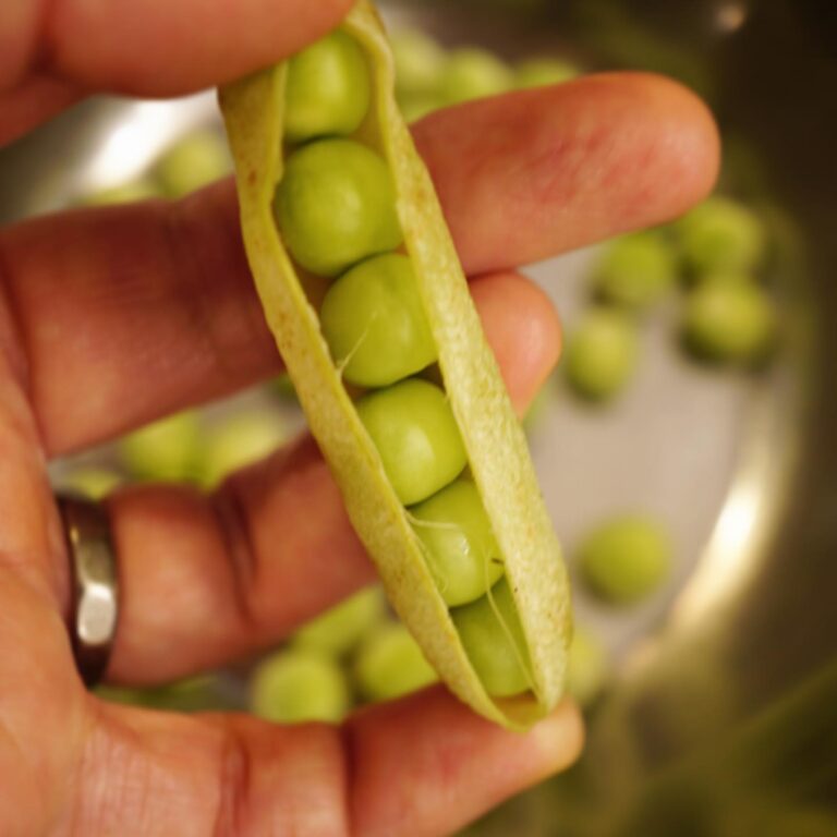 森田農園さんの青えんどう豆を開いたら、健気にみっちり育ったお豆さんたちが出てきて…あまりの可愛さに写真を撮りました。白和えにいたします!(麻)