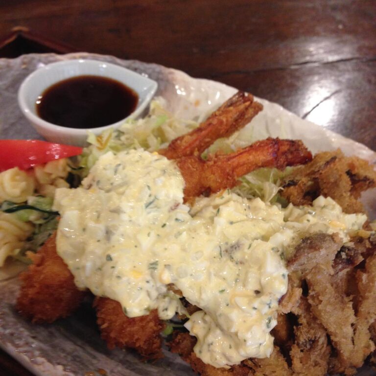 今日のまかないは「エビフライ きのこフライ タルタルソース定食」です。最近私は酢の物にハマってます。昨日はタコ、きゅうり、ワカメの酢の物でした。酢のジュースも作りました。(い)