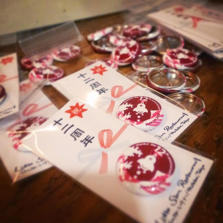 あー、土曜日ランチは遅混み御礼!記念のバッヂがホイホイはけて、あわててワタクシ袋詰め!(手作業です!)夜もあれこれご予約多数、お電話してからのご来店が吉です!(0422-45-3331)(お)