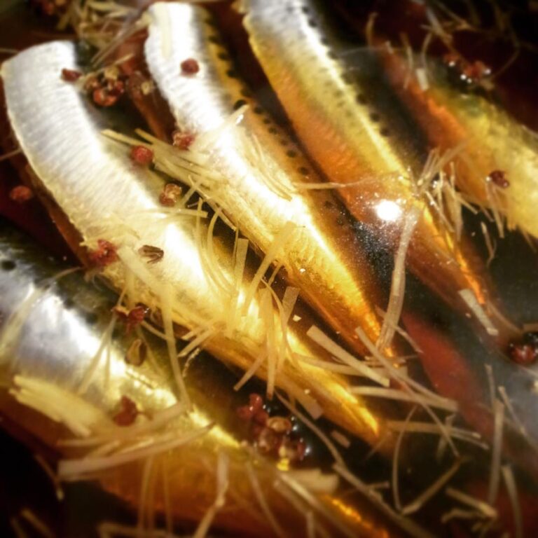 お昼の賄いにウメさんがアップしてくれた「いわしの花山椒煮」!…ランチで人気でしたが、夜もいこう!これから煮込みに入ります!ぴかぴかいわしが実にきれい!(お)