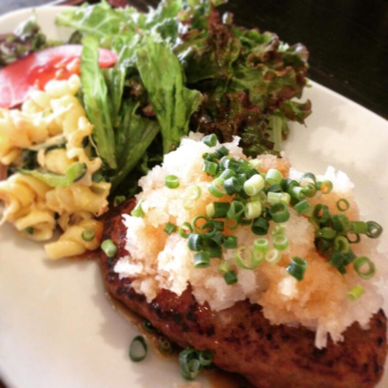 今日は日替り定食が売切れ(ご来店ありがとうございました!)、まかないは「おろしハンバーグ・たたき梅添え」にしてもらいました。たたき梅、さらにさっぱりで今日の気分にぴったりでしたよ。棚からぼた餅気分、美味しくいただきました。(うめ)