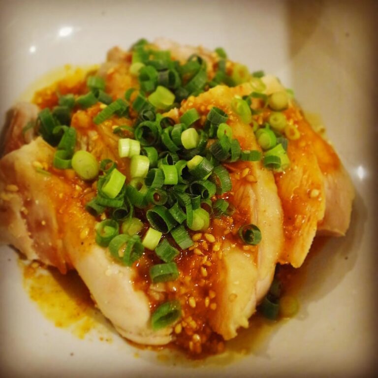 あー、いいお天気でGWは初日の昭和の日!いや、今夜はピリ辛!スパイシー!「香味鶏の四川辛子ソースが(笑)がけ」!やわらか鶏肉の旨味!四川辛子ソースをからめてどうぞ!(お)