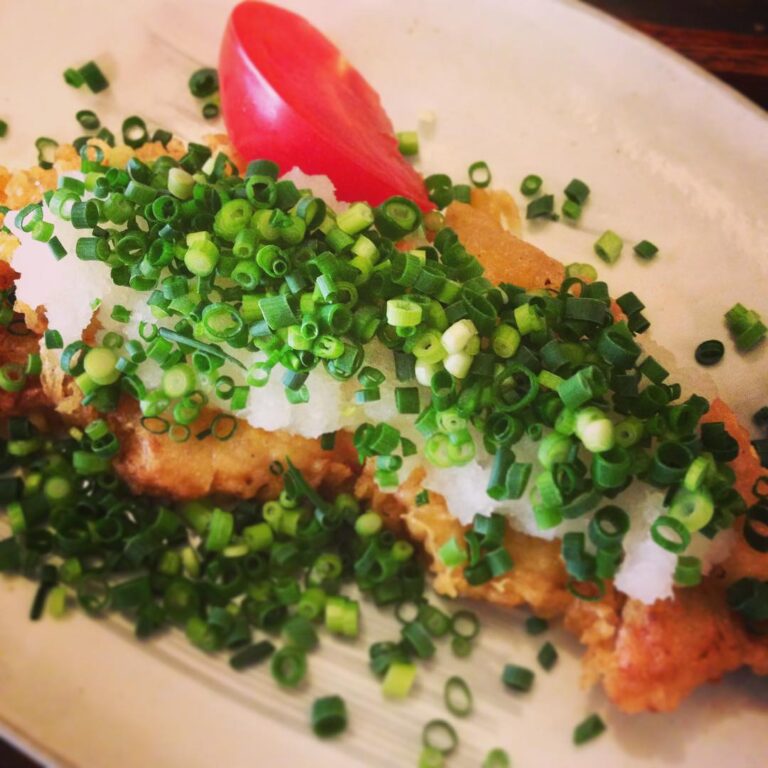 うーん、いい天気ですね〜!今日は、たっぷりのネギとポン酢で、かりっと揚がった豚肉の天ぷらをいただきます。通称「ねぎとん」…夜メニューでは定番でご用意しています。しっかり食べたら、花粉に負けずに後半戦まいりましょう!今日もご馳走様です。(ぬ)