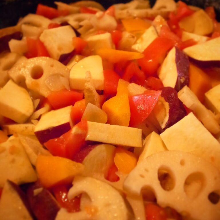 あー、ワタクシの中ではなんとなく「酢豚」みたいな味?!(笑)いやいや豚肉もパイナップルも入ってませんよと、小さなメニューは「根菜カポナータ」仕込み中!さつまいもの甘みとトマトの酸味ですかねー…酢豚(笑)。(お)