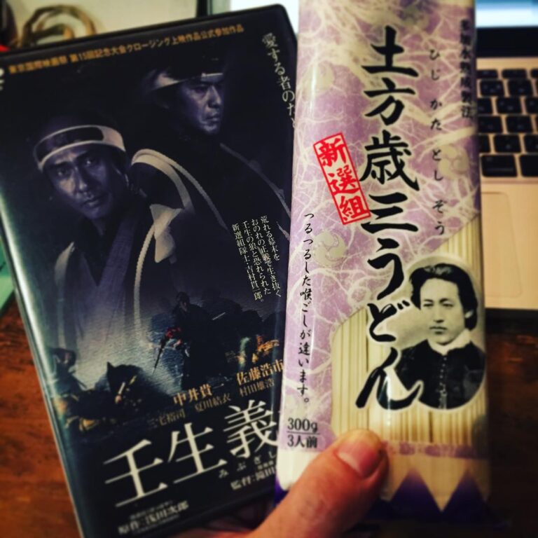 雨の午後は元キッチンスタッフのくろちゃんご来店!と、先日ワタクシドモ自宅に遊びに来た時貸した「壬生義士伝」(中井貴一がイイ!)のDVDのお礼ね〜と、新撰組つながりは日野土産、土方歳三うどんをいただきました!(笑)サンキュウ!(お)