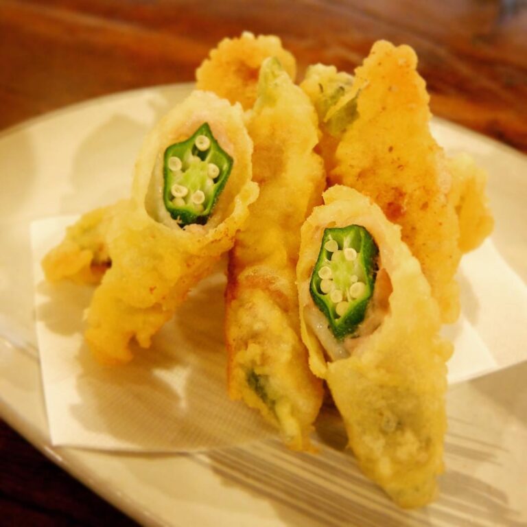 さてさて海の日三連休初日の土曜、いや、特にお出かけもしてなくってさと、三鷹にいるんだよねーなんてみなさん!今夜のおススメは夏野菜!「ゴーヤとオクラの豚肉巻揚げ」!からり揚げたてあつあつをピリリとカレー塩でどうぞ!ビールのおともにうってつけ!(お)