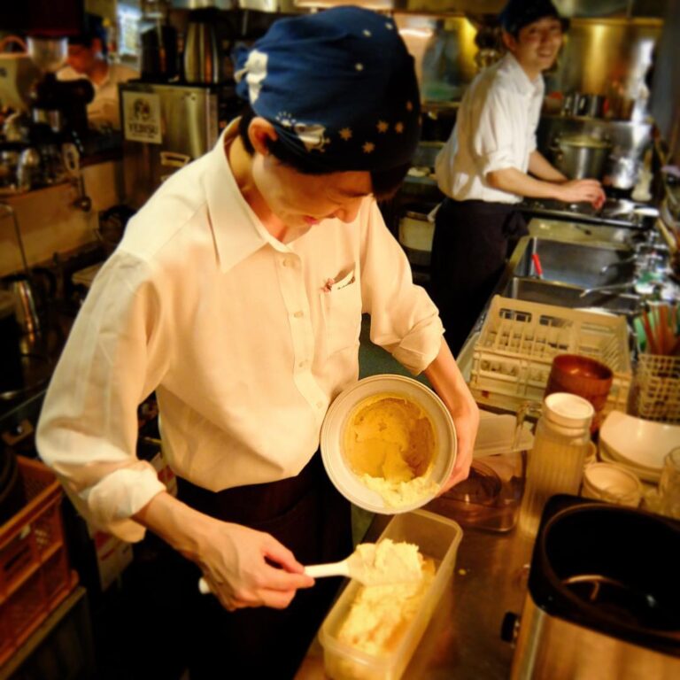 賄いの片付けものをしたウメさん…沼田さん、それ…って、あー、この形状だとマンゴーには見えないね、黄色いイカみたいだねと(苦笑)、いやいや雨の木曜日、新作アイスクリームの仕込みに余念のない沼田さんです!おいしいのよろしく!(笑)(お)