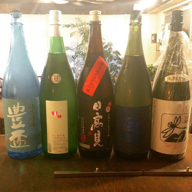日本酒、切り替わります!豊盃の夏バージョンは残り僅か!店長お気に入りの爽やかな日本酒は愛宕の松から「ひと夏の恋」.同じく宮城のお気に入り「日高見 弥助」もキリッとしたうまさ!食中酒に馴染みの良い「若波」に、こっくり熟成感のある「黒とんぼ」。味の方向性色々!楽しめますよー