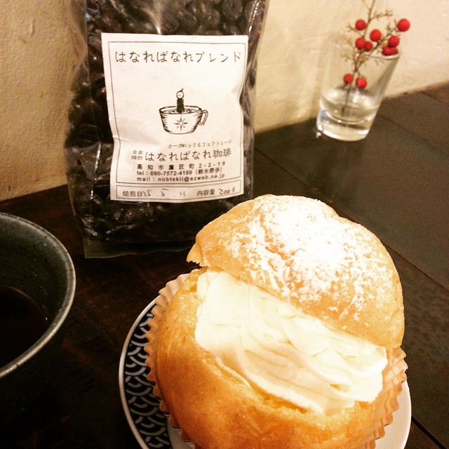 まかないのあと、くぼさんのお土産コーヒーを入れましょう^_^、と思っていたら、おなじみのお客様がご来店。WESTのシュークリームを差し入れてくださいました。なんてタイミング!生クリームが美味しい!はなればなれブレンドって切ないような可愛いような名前ですね。かおりさん、くぼさん、素敵な素敵な午後になりました。ありがとうございます(^○^)。(うめ)