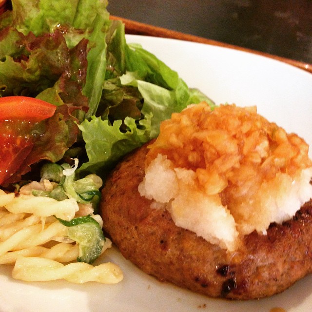 まかない特権いろんなハンバーグシリーズです。今日はおろし玉ねぎ醤油ハンバを作ってもらいました。おろしでさっぱりなんですが、さっぱりなぶん噛めば噛むほどお肉の味がします。そしてたまねぎでまたさっぱり。今日も美味しかったです。ごちそうさまです( ̄ー ̄)。(うめ)